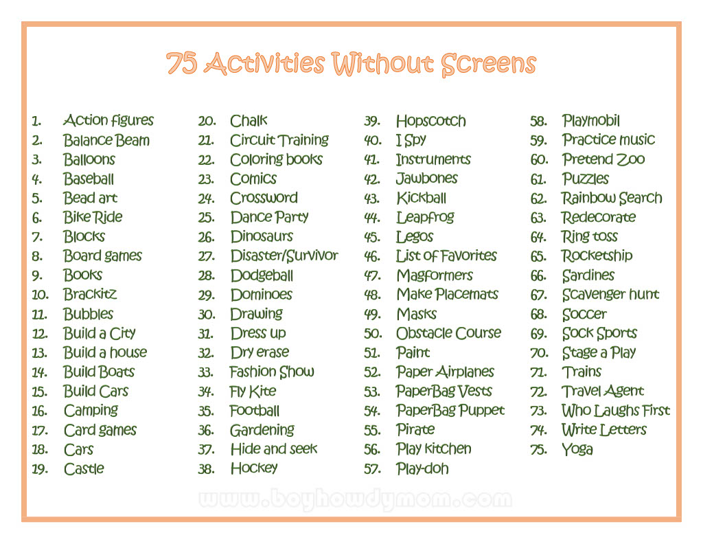 Weaning the kids off their 24hrs/day screens was not easy and we are still struggling. We needed ideas so we came up with the following document: